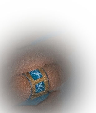 In dit schilderij heb ik heel bewust gebruik gemaakt ook van de turkoois kleur, de betekenis daarvan staat omschreven bij ' de Leeuw van Juda' , evenals het goud. In dit schilderij is de zegelring van goud.